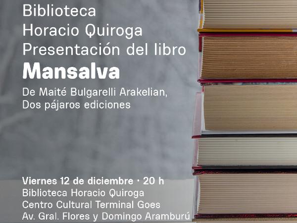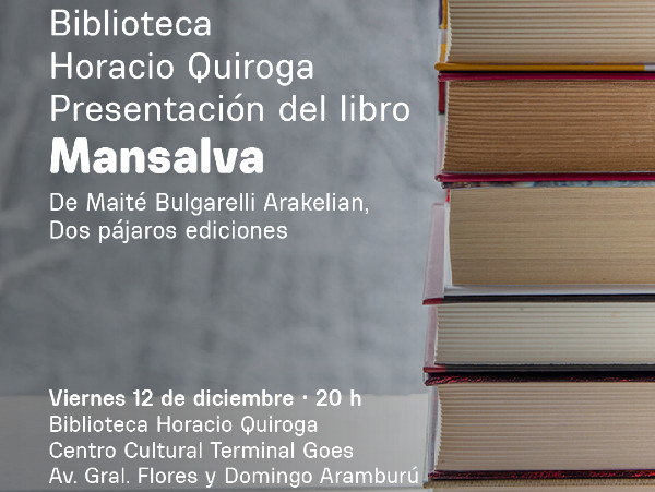 Ver la imágen completa Este viernes 12 a las 20h. les invitamos la presentación de Mansalva, el libro de poesía de Maité Bulgarelli Arakelián.¡Les esperamos! Lugar: Biblioteca Horacio Quiroga