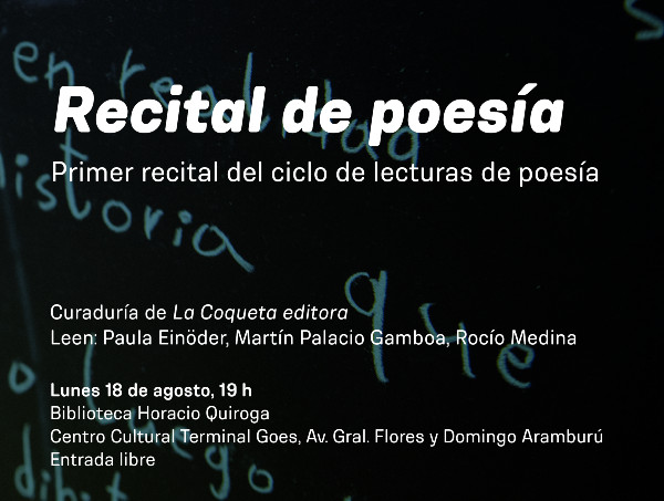 El lunes 18 de agosto damos inicio a los recitales de poesía en la biblioteca Horacio Quiroga, ubicada en el 1er. piso del Centro Cultural Terminal Goes.