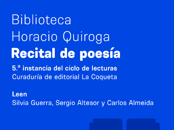 Ver la imágen completa Les invitamos a la quinta instancia del ciclo de lecturas de Poesía en la biblioteca Quiroga.Lugar: Biblioteca Horacio Quiroga